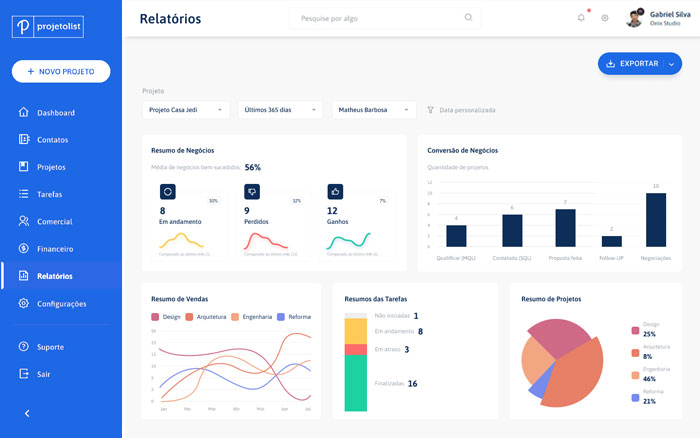 O Projetolist é uma plataforma para gerenciamento de escritórios de arquitetura e engenharia, focada em trazer toda as soluções específicas desse mercado em um único local.
