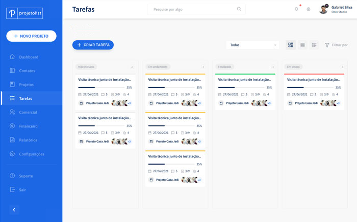 O Projetolist funciona na metodologia Kanban e Gantt de gestão, com ela você consegue gerir e resolver problemas no seu processo e workflow para que possa fazer entregas consistentes aos seus clientes.